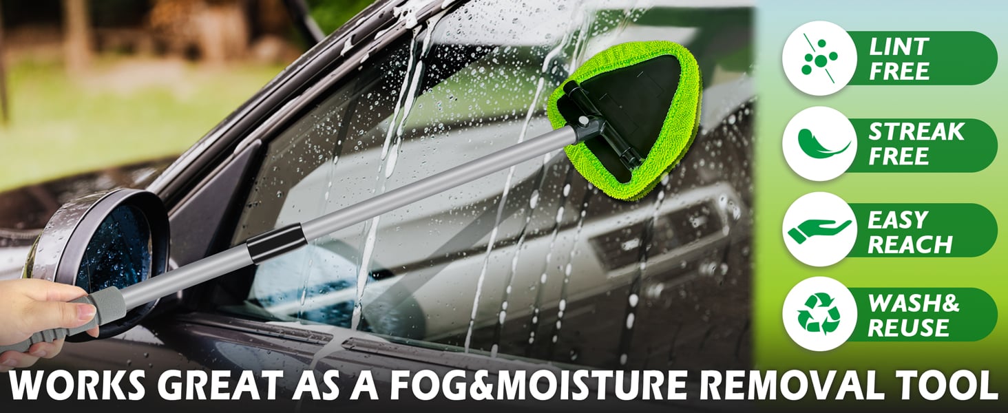 • 🔥Microfiber Car Windshield Cleaning Tool with Extendable Handle